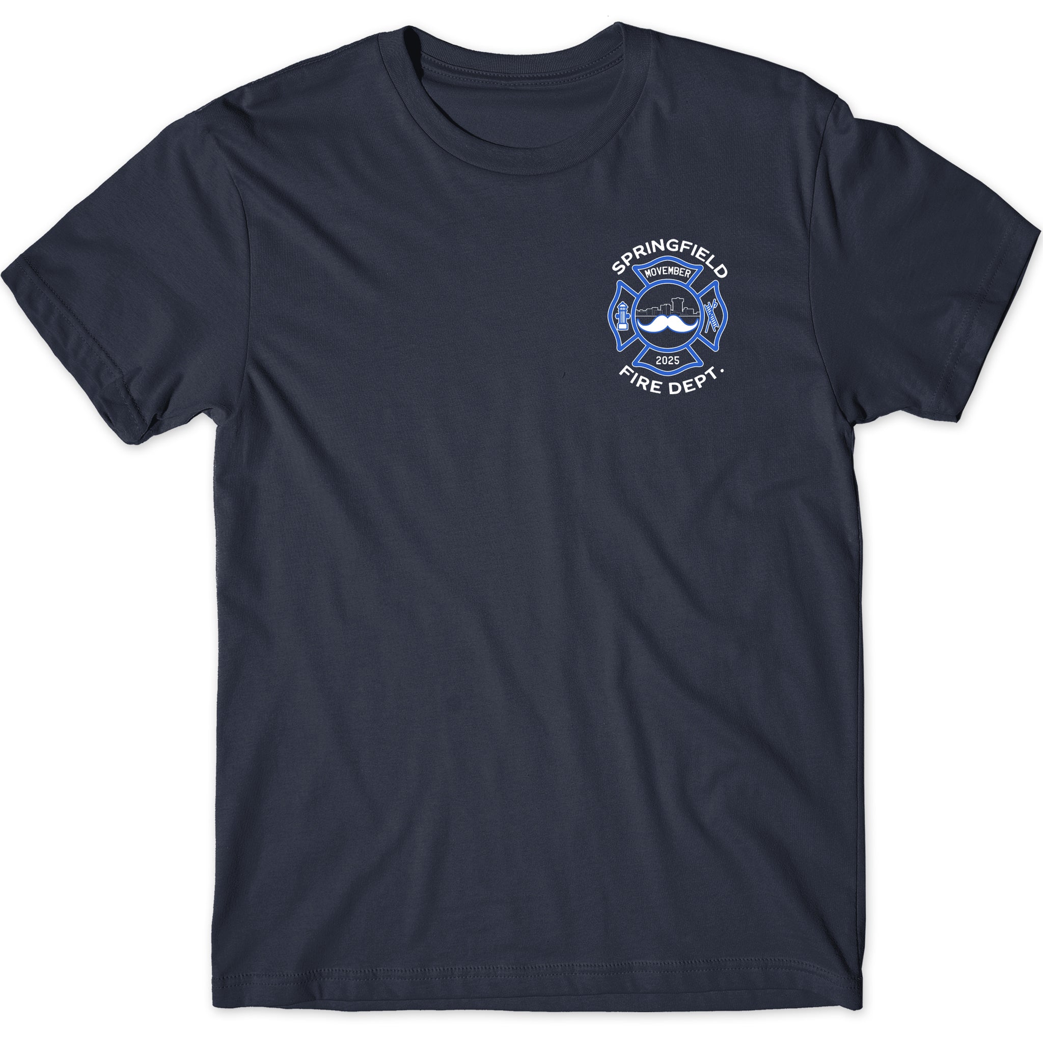 Springfield Fire Department duty approved shirts for Men's Health awareness month, November 2025.  Short sleeve T-shirt, 50/50 preshrunk cotton / polyester, soft feel, classic fit